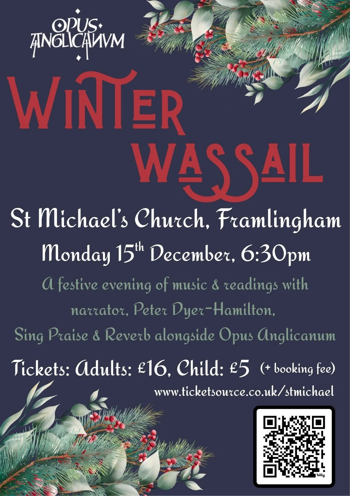 Join Opus Anglicanum as they present a festive programme of readings and music in collaboration with the youth choirs of Framlingham Church. A Winter Wassail is full of joyful, poignant and humorous texts read by actor Peter Dyer-Hamilton, alongside beautiful Christmas songs and seasonal carols.